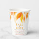 Loose fall autumn leaves watercolor painting art fall in love wedding paper cups. Simple loose watercolor art orange, yellow and red design ideal for a fall wedding. © Original watercolor art and design by Sarah Trett for www.mylittleedenweddings.com on Zazzle.