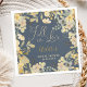 Fall in love boho floral autumn chic bridal shower paper plate featuring pretty green, yellow, mustard and khaki flowers frame with foliage and eucalyptus on dark dusty blue. A boho inspired fall autumn bridal shower theme with a modern heart script typography .
