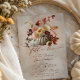 Our fall in love boho autumn bridal shower invitation features a beautiful collage of cabbage roses, garden roses, ranunculus, pumpkins, and leaves. The invitation is set on a light cream background with the date, time, and location of the bridal shower in a tasteful font. The bohemian design and autumnal colours add a touch of whimsy and romance, and the overall design is perfect for celebrating the upcoming bride with your loved ones in a stylish and festive way.