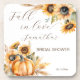 Fall in love boho pumpkin sunflowers pampas grass bridal shower favours personalised coasters, watercolor earthy dusty yellow pumkin and sunflowers for fall themed bridal shower favour gifts.