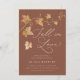 Celebrate the bride-to-be with this elegant fall bridal shower invitation by Redwood & Vine Design Co. Featuring hand-painted autumn leaves on a rich terracotta background, this double-sided design includes custom event details and a registry QR code on the reverse in a soft ecru tone. A cosy and romantic option for your autumn bridal celebration.