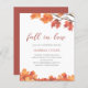 Customisable modern bridal shower paper invitations, featuring a branch of a tree in fall and autumn leaves in tones of orange, rust, yellow and browns on a clean white background. This is an affordable paper invitation. You are welcome to visit our store Peony Designs to purchase this invitation on card or digital.