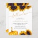 Modern yellow gold sunflowers and pumpkin Fall in Love affordable budget bridal shower invitation with chic golden handwriting calligraphy script. ++ ENVELOPES NOT INCLUDED! +++ Suitable for autumn fall rustic country garden backyard farmhouse bridal shower parties.