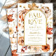 Rustic and elegant bridal shower invitation featuring hand painted watercolor white pumpkins, fall leaves and flowers with golden "fall in love" wording, gold foil arch frame and fall floral pattern in the back. Please get in touch via chat if you need customisation or matching items.