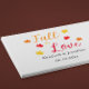 Fall in love custom event gifts with red, orange and yellow autumn colour palette with maple leaves. Text can be customised for a wedding, bridal shower, baby shower or any other event