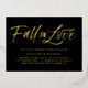 Fall in love! Invite guests to your event with this customisable gold foil rehearsal dinner invitation. It features brush lettering and simple typography. Personalise by adding your event details. This black and gold rehearsal dinner invitation is perfect for fall or autumn weddings. Matching items are available.