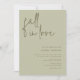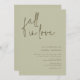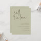 "Fall in love" Celebrate the bride-to-be with this modern minimalist sage and olive coloured bridal shower invitation.