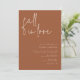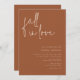"Fall in love" Celebrate the bride-to-be with this modern minimalist terracotta bridal shower invitation.