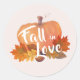 Fall in Love Pumpkin Autumn Leaves Blush Pink Classic Round Sticker