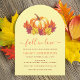 An arched bridal shower invitation in autumn colours: orange, red and yellow. The theme is "Fall in Love".
