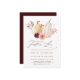 This wedding invitation features watercolor white and yellow pumpkins adorned with burgundy, maroon, and blush pink flowers over fall leaves. For more advanced customisation of this design, Please click the "Customise further" link. Matching items are also available.