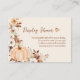 Let your bridal shower capture the cosy autumn aesthetic with this pretty display shower enclosure card. The card features a poem asking guests to bring their gifts to display at the shower and matches the coordinating Fall in Love Pumpkin bridal shower invitation. Showcasing a warm pumpkin nestled in fall florals with a lovely pattern on the back, this card is perfect for any bridal shower.