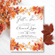 This rehearsal dinner invitation features beautiful autumn leaves, making it perfect for a fall-themed party. The invitation is simple and elegant, with a white background and black text. The bunch of autumn leaves adds a touch of whimsy and fun, and the overall design is perfect for celebrating the couple's upcoming wedding.