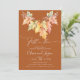 This rehearsal dinner invitation features beautiful autumn leaves, making it perfect for a fall-themed party. The bunch of autumn leaves adds a touch of whimsy and fun, and the overall design is perfect for celebrating the couple's upcoming wedding.