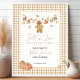 Welcome guests in style with this adorable gender-neutral “Fall in Love” baby shower poster. Featuring a clothesline of fall baby outfits, autumn leaves, and pumpkins with bows, all framed by a rustic gingham border. Perfect for farmhouse, woodland, or neutral-themed showers. Easily customisable for your special day!