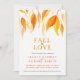 Fall in love watercolor orange leaves wedding invitation