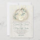 Fall in love, elegant white pumpkin with golden botanical vines of blue green foliage and string lights autumn boho chic wedding invitation. Rustic white washed barn wood look with traditional text and hand script style fonts. Kraft paper brown print on reverse side.