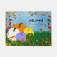 Image of an autumnal scene, with leaves falling on pumpkins.