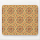 This mouse pad has a geometric design of manipulated squares in orange, brown, shades of green on a field of cream. If you want the same design with different colours, message me.