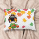 Fall Kokeshi Doll - Green Kimono Geisha Girl Decorative Cushion