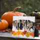 This beautiful wedding announcement Thanksgiving photo plaque features an elegant 3 photograph collage under the orange words We Eloped. This pretty autumn leaf photograph with trendy white wood behind the leaves is a chic holiday card to decorate with your newlywed photographs. Give thanks for your new marriage with these cute couple pics.