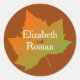 Stylish Autumn wedding envelope stickers, with a colourful Fall maple leaf, against a pumpkin spice coloured background. Personalise the text with the bride and groom's names. Great as seals for your Fall wedding invitation envelopes or as favour gift tags.