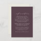 With its rich and seasonal fall shade of plum and elegant typography, this wedding information enclosure card coordinates perfectly with the Lea Delaveris Design fall leaves autumn wedding collection. With its simple design, it can also be used to match other wedding collections and the background colour can be changed by clicking "customise further."