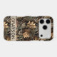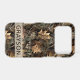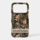 Customize this fall leaves camouflage iPhone 17 pro case with your name in a trendy modern CAP font in brown on opaque cream. It's masculine and perfect for your favorite military, hunting, country or outdoorsman!