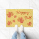 This Fall Leaves Door Mat features beautiful fall leaves and the text Happy Fall. You may customise the text to whatever you like! For Indoor or Covered Outdoor use!