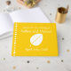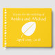 Create a lovely custom way for the guests of your fall wedding or event to leave their names and messages for the happy couple. A bright yellow background is decorated with a white leaf on both the front and the back. Along the spine, a pattern of leaves and acorns creates a sweet accent. The front has a sample message, names, and date that can be customised to make this book unique for the event.