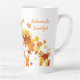 Ceramic coffee latte mug is shown with a pretty autumn fall leaves print.