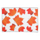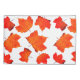 Printed with image of artistic, colorful orange maple tree leaf patterns in solid white background.