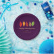 This paper plate features a graphic of brightly coloured autumn leaves. The colours use in this simple but bold design are red, orange, brown and lime green on deep dark purple background. Customisable text, in light orange, reads: Happy Thanksgiving. Personalise this paper plate with your name and the year.