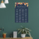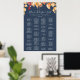 This fall leaves navy blue alphabetical seating chart poster is perfect for an October wedding. This sign can be used to organise your guests alphabetically or by table number. The modern rustic design features stunning hand painted watercolor autumn leaves in colourful shades of yellow, burnt orange, and burgundy red which pops on a navy blue background. This wedding poster includes enough room for up to about 120 guests. Make room for more (or less) guests by clicking the "customise" button and decrease or increase the size of the font. In addition to the placement of each guest, personalise this sign with the names of the bride and groom and the wedding date.