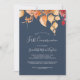 This fall leaves navy blue and burgundy first communion invitation is perfect for an October event. The modern rustic design features stunning hand painted watercolor autumn leaves in colourful shades of yellow, burnt orange, and burgundy red which pops on a navy blue background.