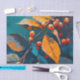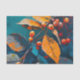Fall leaves and rowan berry Tissue Paper in blue red orange colours. Abstract modern floral autumn nature oil painted art.