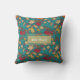 This darling throw pillow features a simple leaf and berries pattern on a dark turquoise blue background, with a light green text box for your own text. These would look fabulous on your sofa in autumn!