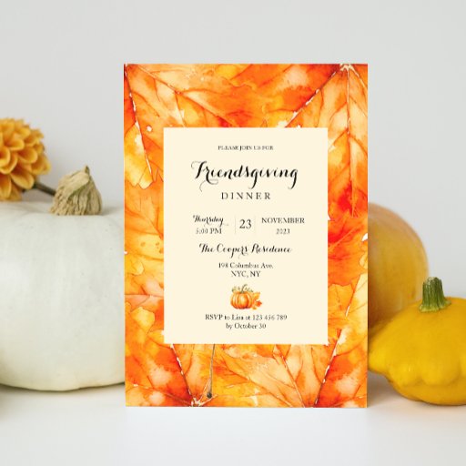 Fall Leaves Pumpkin Friendsgiving Dinner Invitation