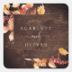 These fall leaves rustic brown wood envelope seals are perfect for an October wedding. The rustic country design features stunning hand painted watercolor autumn leaves in sunset shades of yellow, burnt orange, and burgundy red which pops on a faux wood background. Personalise the label with the names of the bride and groom.