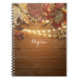 Fall Leaves & String Lights on Rustic Wood Notebook