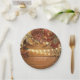 Fall Leaves & String Lights on Rustic Wood Paper Plate