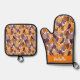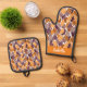 Fall Leaves Thanksgiving Pattern Custom Name Oven Mitt & Pot Holder Set