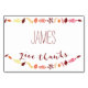 White double-sided Thanksgiving place cards (horizontal) with fall leaves and customisable text