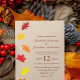 Fall leaves wedding invitation. Autumn oak and maple leaves against a rustic light brown background