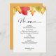 Capture the enchanting spirit of autumn with this Fall Leaves Wedding Menu Invitation, available in both digital and printed formats to suit your celebration. Adorned with beautifully detailed illustrations of rich, colourful fall foliage, this design blends rustic charm with timeless elegance, making it perfect for cosy barn weddings, outdoor gatherings, or sophisticated seasonal events. The combined menu and invitation layout allows you to share both your wedding details and dinner plans in one stunning piece, ensuring a cohesive, memorable presentation. Choose a high-resolution digital file for easy online sharing or premium printed cards for a luxurious, tactile keepsake that will impress your guests.