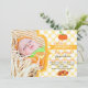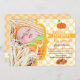 Modern birth announcement with photo template. It is illustrated with cute pumpkin, dried leaves and fancy typography. It features your newborn baby photo. Personalise it with birth details. Elegant option for fall Main colours are orange, white and green. Some elements by Goodness and Fun @ Mygrafico.com.