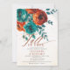 Fall Love Modern Teal Orange Wedding Bridal Shower Invitation