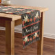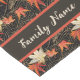 Customise this elegant table runner with a pattern of red and white fall maple leaves on a black background with your family name.