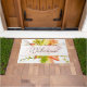 Fall maple leaves with welcome doormat