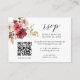 Fall Maroon Beige Pink Floral QR Code Wedding RSVP Enclosure Card